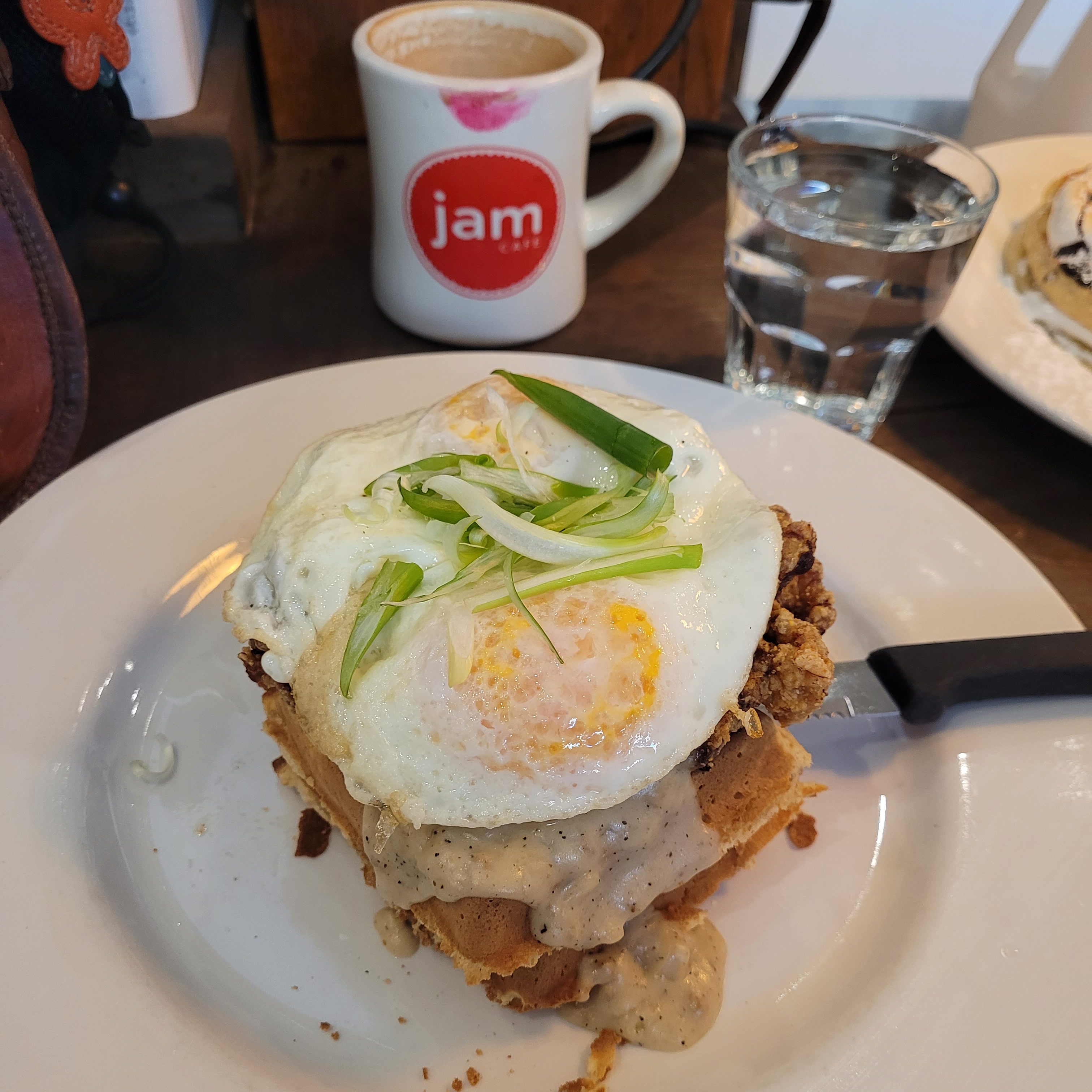 Here’s where I admit my hubris. I’m a sucker for chicken and waffles, and theirs came highly recommended. As a southerner I’m pretty judgmental when I see southern dishes where they shouldn’t be (like the Tex Mex restaurant I spotted in Edinburgh, Scotland) and y’all, my stomach is growling as I write this remembering my plate. It was huge — I could only finish half of it. The pork sausage gravy was brilliant, the coffee was fresh and well brewed and the service was impeccable. I’m not one to repeat restaurant visits when I’m traveling, but I’d come back here.